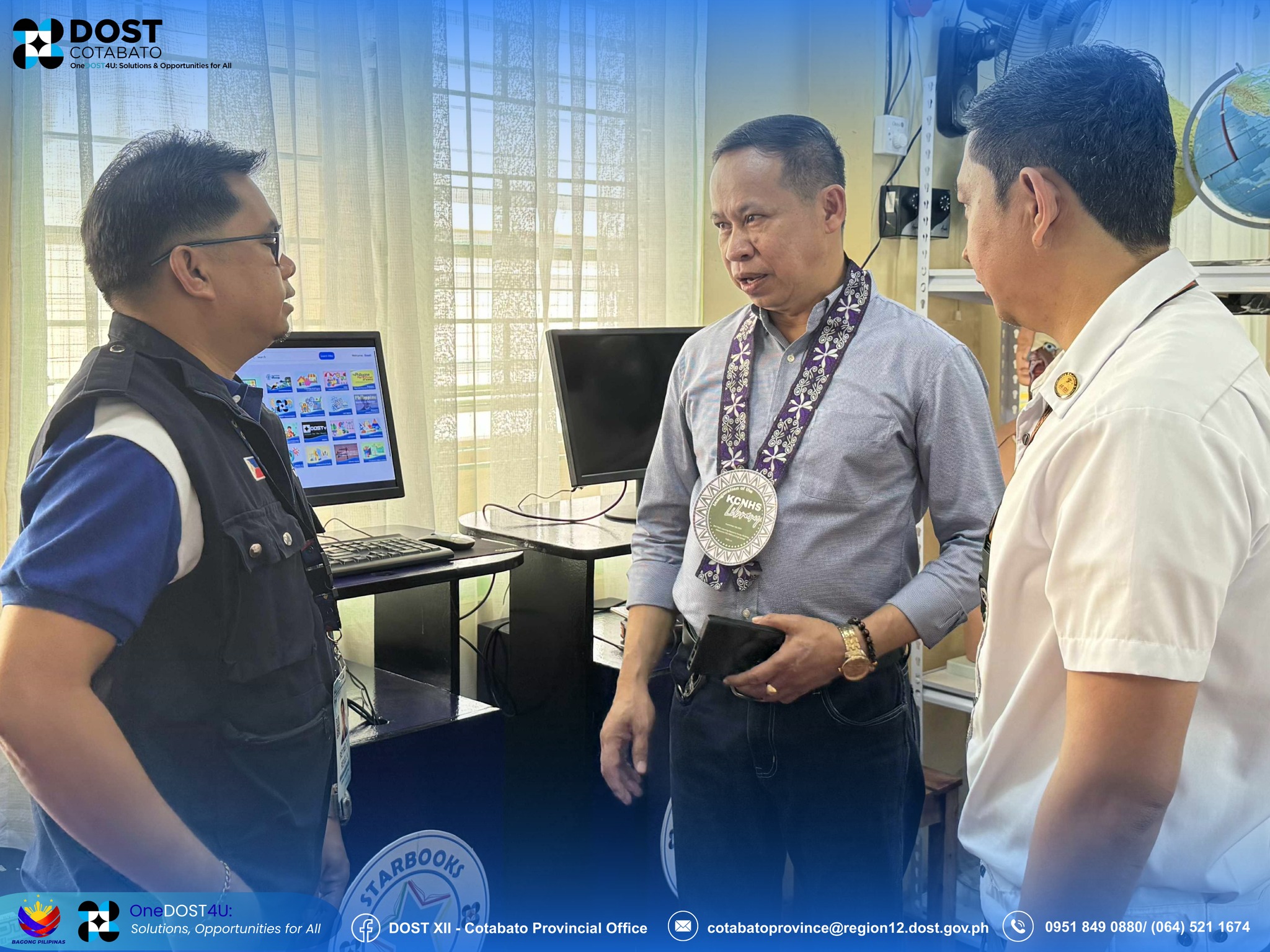 The DOST Cotabato team, guided by Regional Director Engr. Sammy P. Malawan through Provincial Director Dr. Michael T. Mayo, showcased the features and functions of the DOST Science and Technology Academic and Research-Based Openly Operated Kiosk Station (STARBOOKS). This digital library will serve as a valuable resource for students, teachers, and researchers providing access to thousands of science and technology materials, e-books, and interactive content. It is expected to significantly enhance the learning experience in the newly inaugurated library.