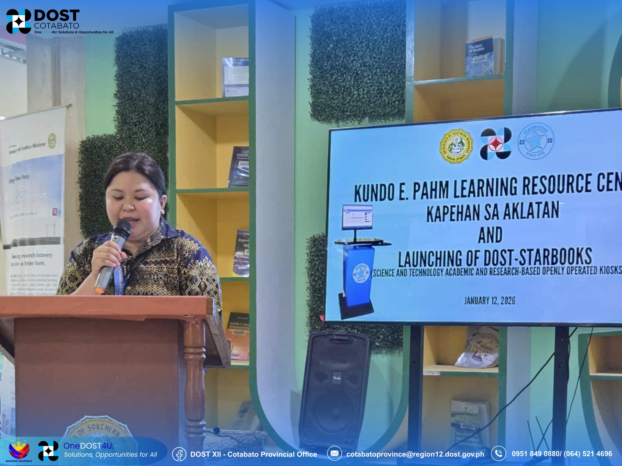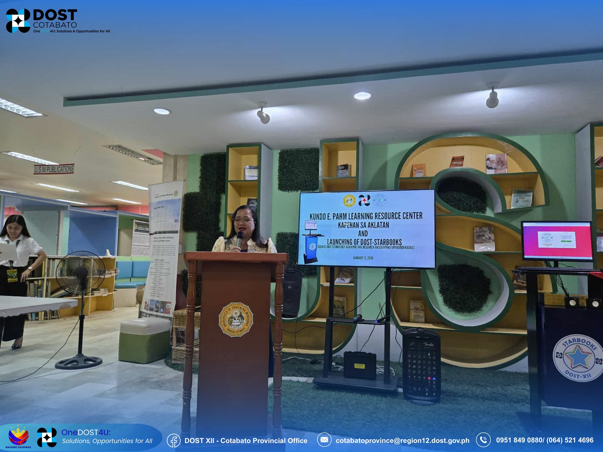 The University of Southern Mindanao's Kundo E. Pahm Learning Resource Center (KEPLRC) conducted the Kapehan sa Aklatan and the Launching of the Department of Science and Technology DOST-STARBOOKS on June 12, 2026, at the USM Main Campus in Kabacan, Cotabato.