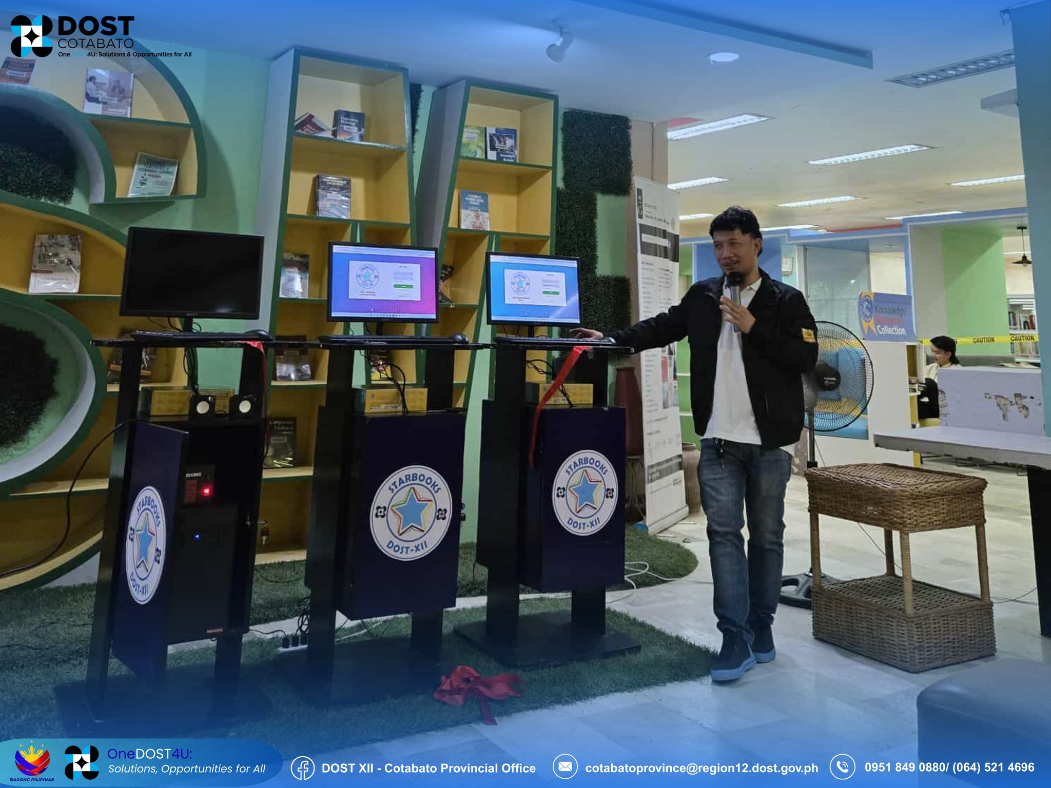 During the launch, DOST SOCCSKSARGEN presented and demonstrated the key features and functions of STARBOOKS (Science and Technology Academic and Research-Based Openly Operated Kiosk System) to KEPLRC library staff, faculty members, and students.