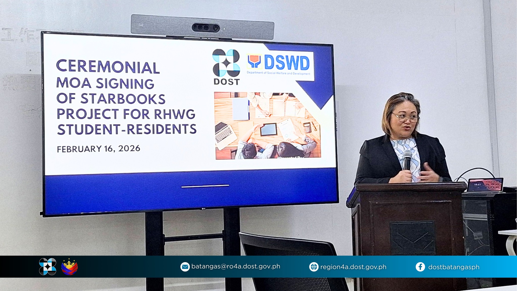 The Department of Science and Technology (DOST) IV-A and the Department of Social Welfare and Development (DSWD) IV-A formalized their partnership for the deployment of the Science and Technology Academic and Research-Based Openly Operated KioskS (STARBOOKS) digital library at the Regional Haven for Women and Girls in Rosario, Batangas through a Memorandum of Agreement (MoA) signing held at South Park Center, Alabang, Muntinlupa City, February 16.