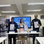 Mr. Alan Taule, Chief , IRAD, DOST-STII and Mylene Abiva , President/ CEO , FELTA Multi-Media Inc. with Jed Abiva Sazon, Brand Activation Officer, FELTA Multi-Media Inc. sign a Memorandum of Agreement at DOST STII Building.