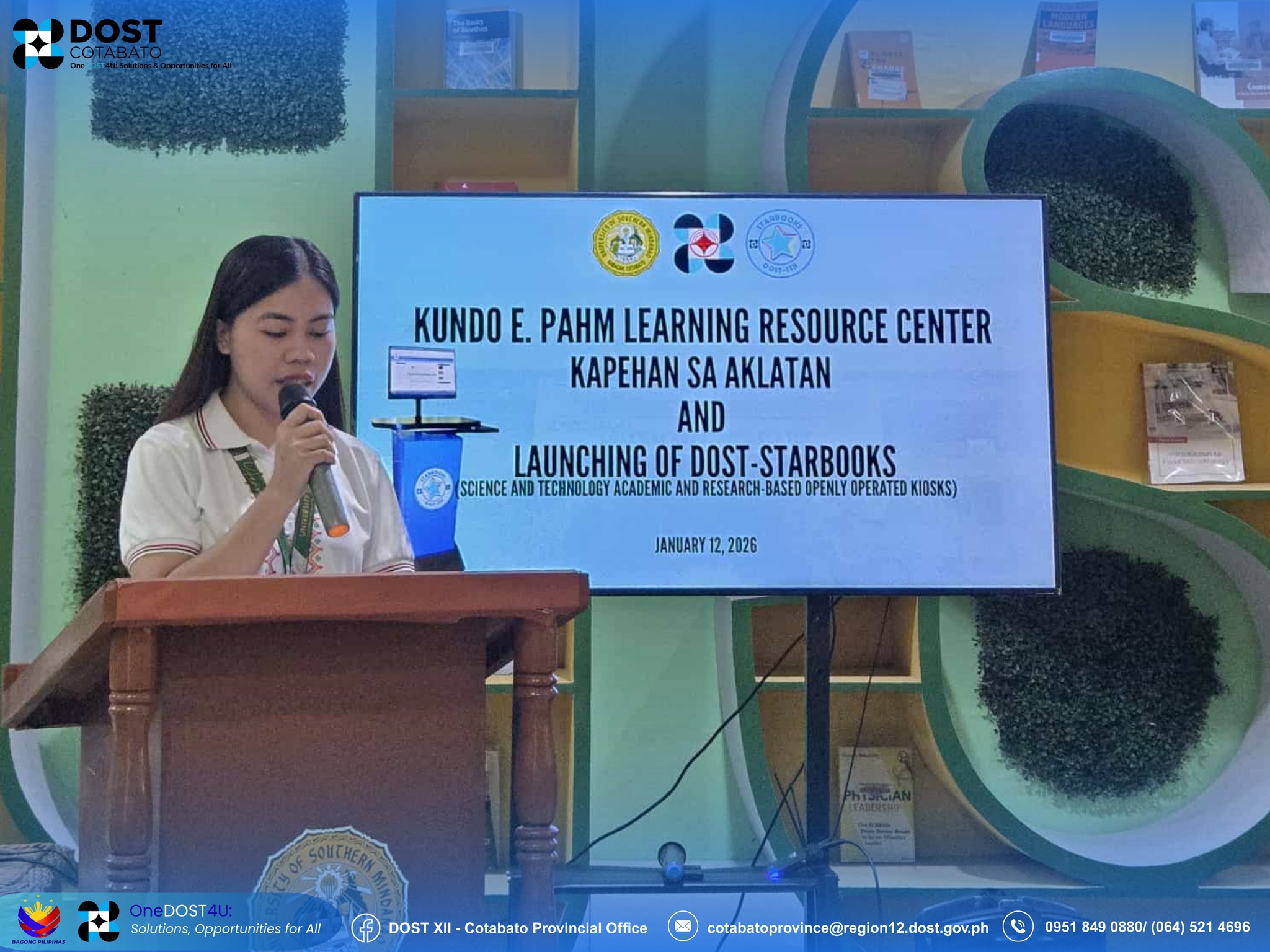 The University of Southern Mindanao's Kundo E. Pahm Learning Resource Center (KEPLRC) conducted the Kapehan sa Aklatan and the Launching of the Department of Science and Technology DOST-STARBOOKS on June 12, 2026, at the USM Main Campus in Kabacan, Cotabato.